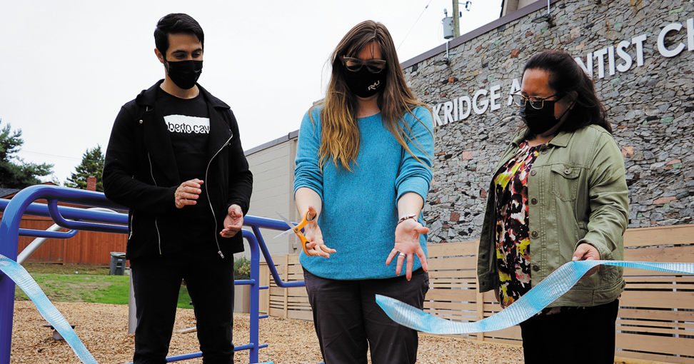 Cutting the ribbon to open the new Fit Park outside Oakridge Adventist Church in Vancouver. PHOTO: OAKRIDGE ADVENTIST CHURCH