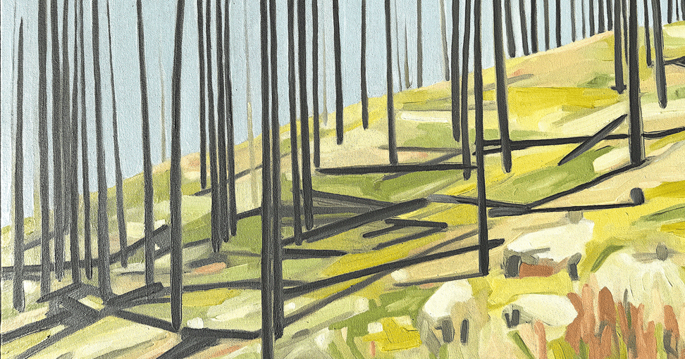 Chikanishing 20: Weathering (36″ × 48″, acrylic and paper collage on board) by Sharon Helleman. SharonHelleman.ca PAINTING © SHARON HELLEMAN