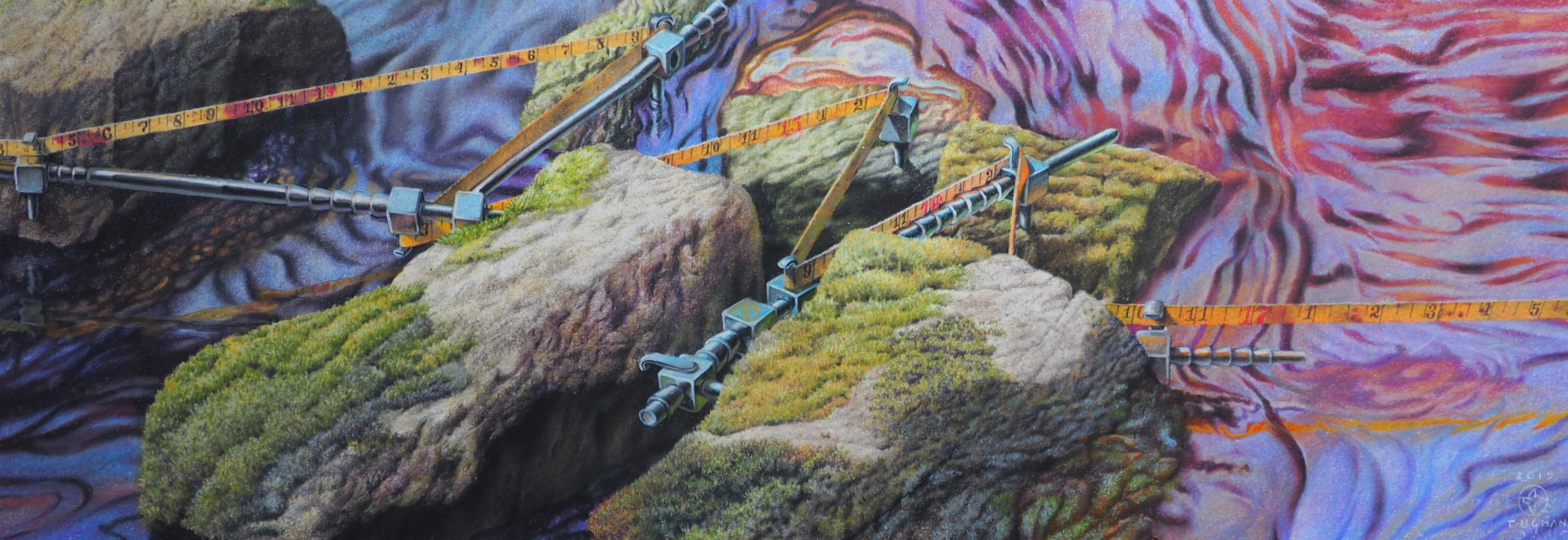 By James Tughan, with chalk pastel drawing entitled "Zigzag"