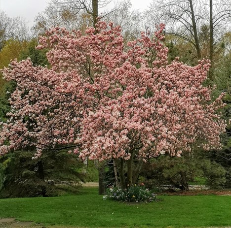 | Brenda Roberts: This magnificent magnolia tree is what I view from my kitchen window. It delights me every spring, and I feel as if it is the glory of God revealed in a tangible form. It sings to me of hope for the future right now because it began to bloom too early, and other years when that happened, the blossoms were nipped by frost and never fully opened. In this unusual year, snow, frost and sub-zero weather tried their best to derail this show, but it survived. I know I will, too, no matter what comes because a gorgeous tree reminded me of the amazing God I serve. |
