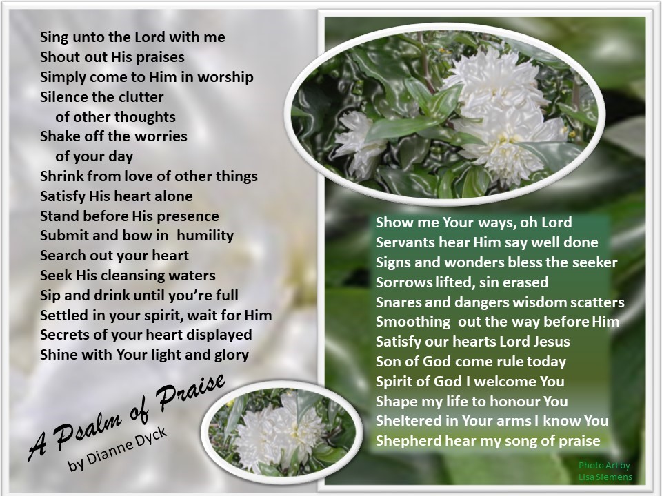 Poem by Dianne Dyck. Photo art by Lisa Siemens. Both from St. Catharines, Ont. |